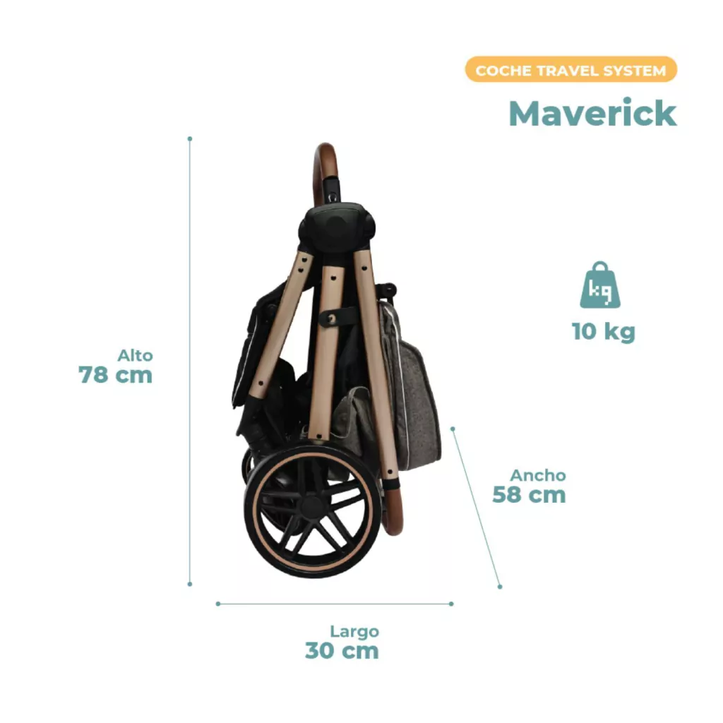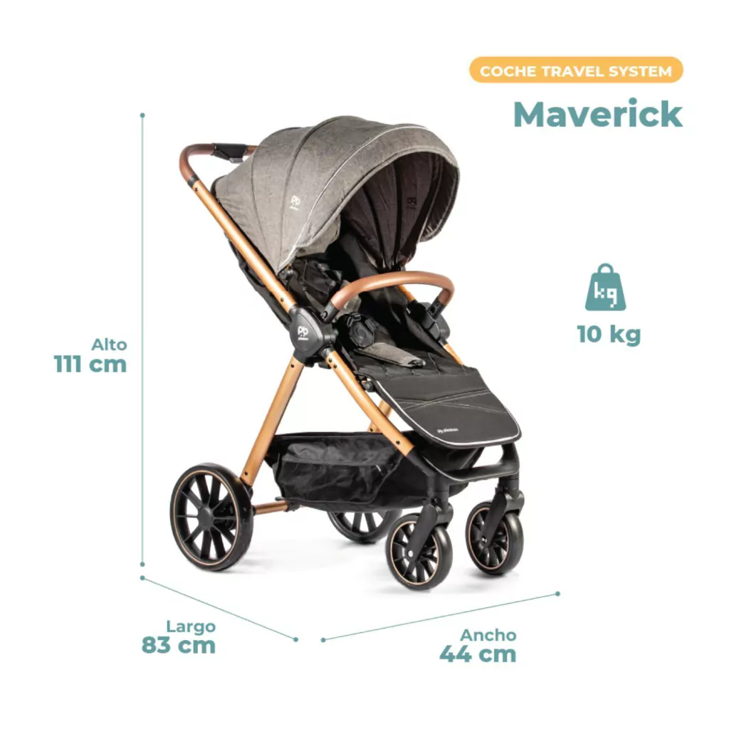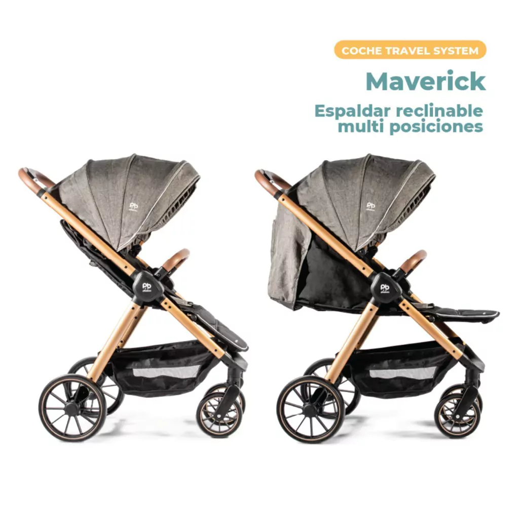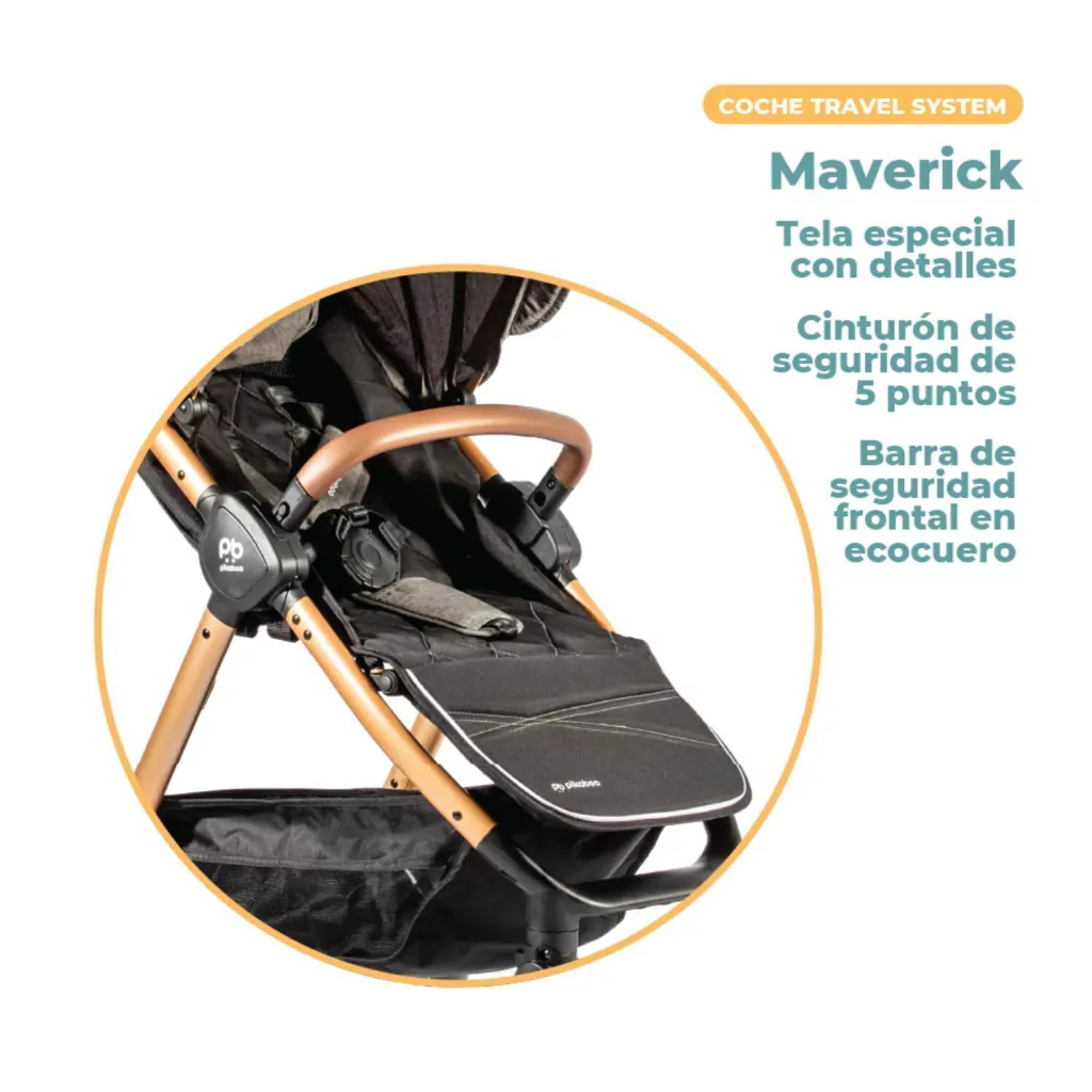 Coche Travel System MAVERICK BLACK, para paseos más cómodos y seguros con el nuevo coche. Desde recién nacido en la silla de auto hasta los 15 kilos del bebé.