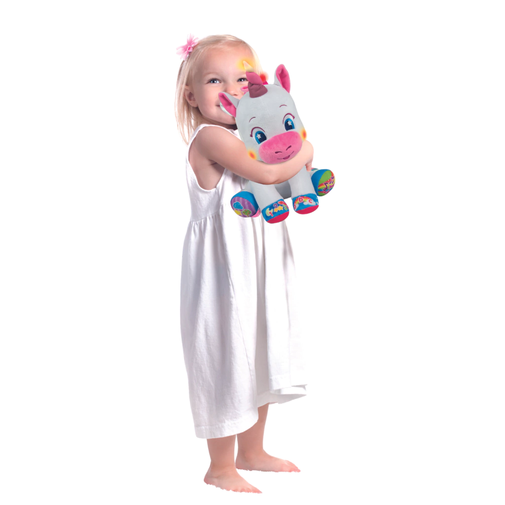 Sus canciones y luces hacen de este unicornio un juguete perfecto para divertirse y aprender, apoyando el desarrollo sensorial, psicomotor, cognitivo y emocional de los niños.
