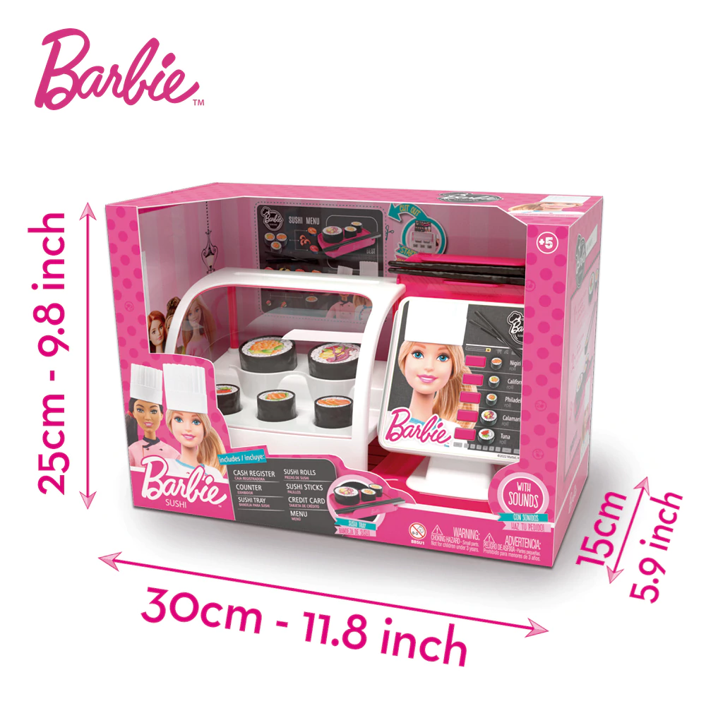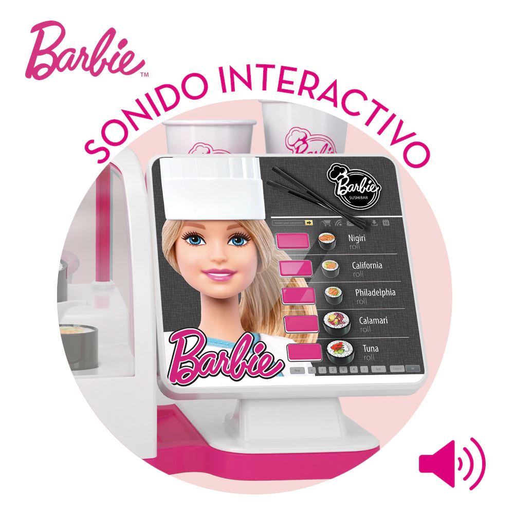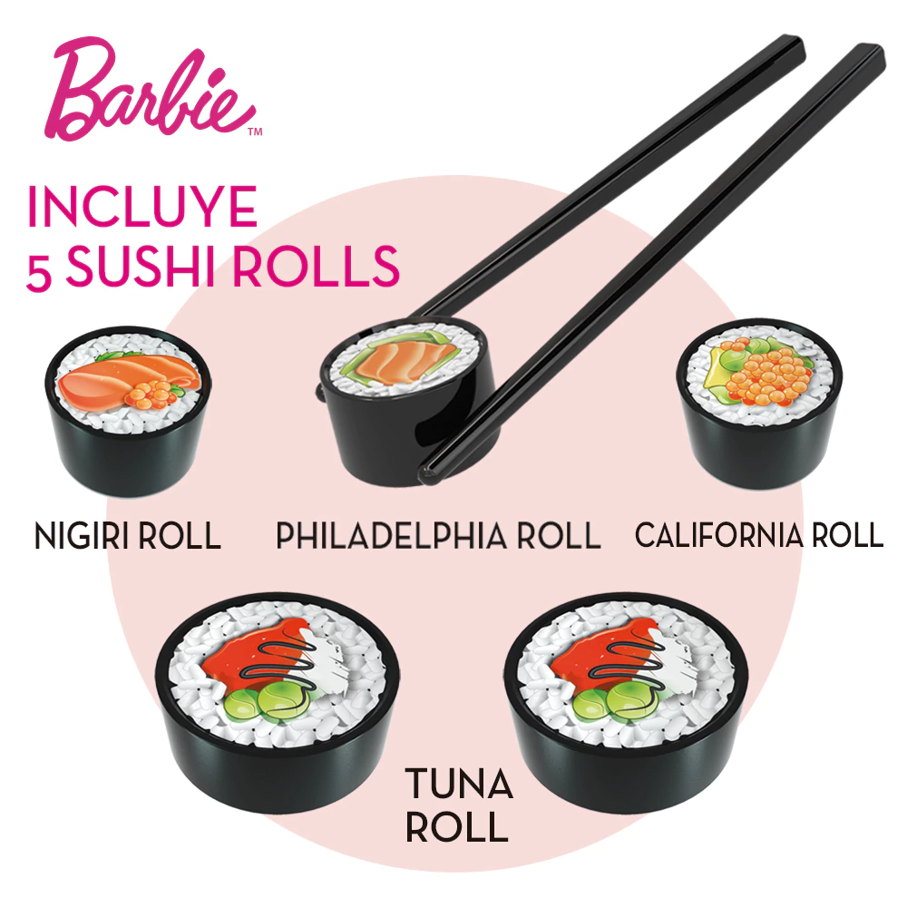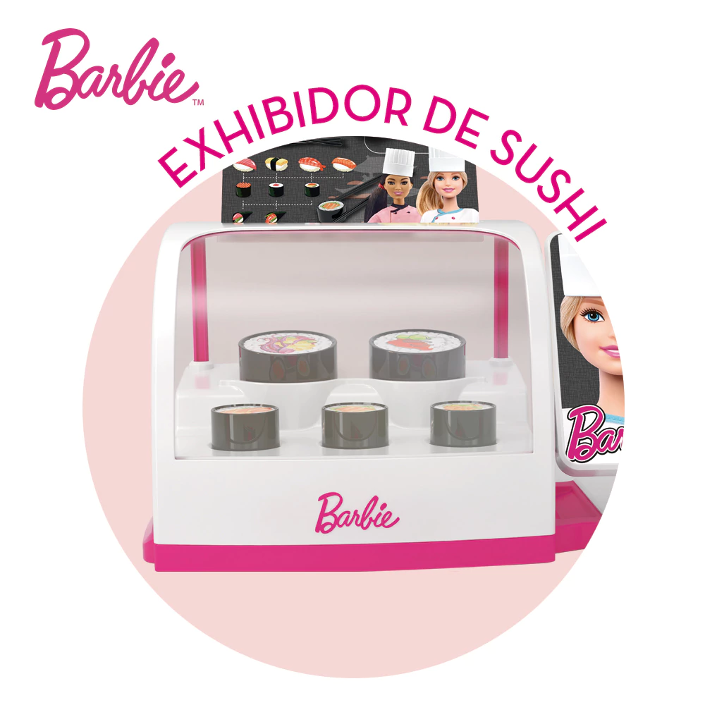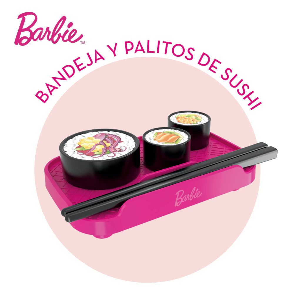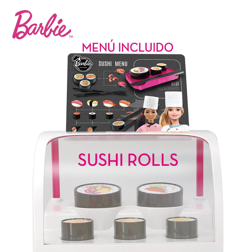 Con un diseño colorido y moderno inspirado en Barbie, la tienda incluye accesorios realistas que permiten preparar y servir sushi de manera interactiva. Además, su mecánica sencilla invita a los niños a imaginar y recrear momentos de diversión en un ambiente de juego seguro.